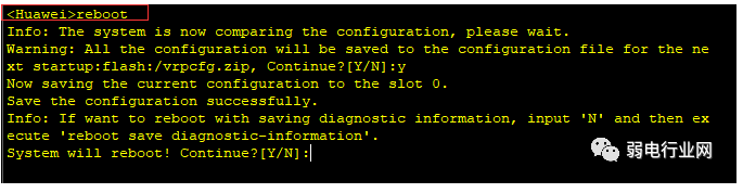 然后再输入命令reboot重启,会提示是否重启设备,按Y。 交换机重启后,就恢复到出厂设置了!